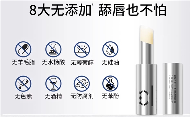 敷尔佳抚纹舒润唇膏(“小钢管唇膏”)直击唇部敏感、唇纹加深等痛点,添加独家专研WKPep® Lip-thickenin丰唇肽,复配2%VC-IP与10%角鲨烷,深层淡化唇纹并形成锁水保护膜;搭配红没药醇、姜根提取物等舒缓成分,经第三方权威检测,敏感肌使用温和无刺激,实现“急救+养护”双重功效。