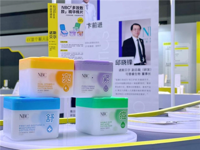 始终坚持“品类深研”的诺斯贝尔,在本次展会上带来多款创新产品,精准契合护肤“微场景”时代。NBC多效敷颜精华棉片,将“分区护理”与“懒人经济”两大趋势融合,针对干燥、衰老、痘痘、暗沉四大问题,推出专属棉片解决方案,以极简流程实现精准高效的护肤体验。